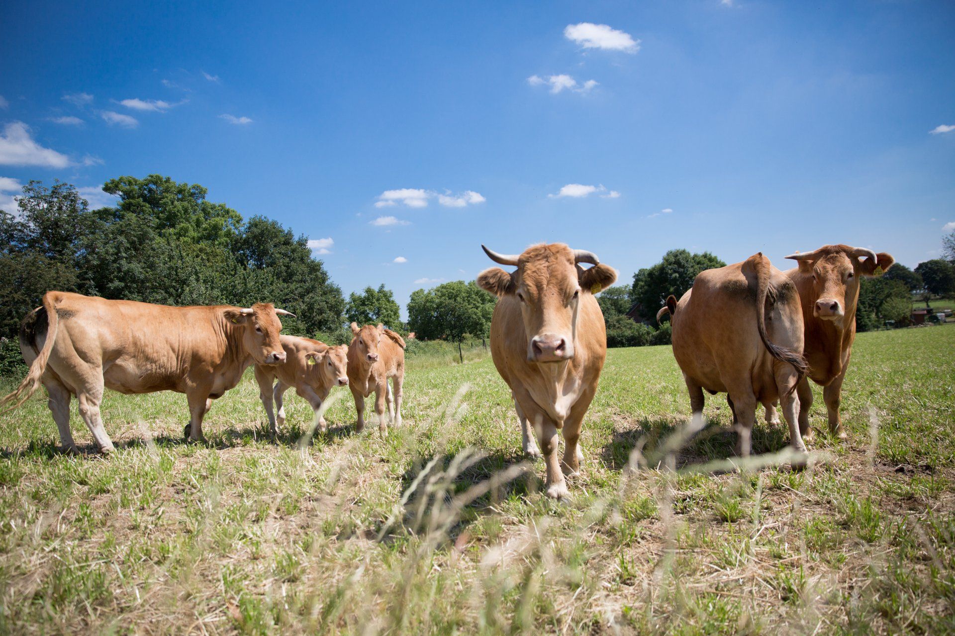Lesen Sie mehr über unsere Zucht mit Mutterkühen der Rassen Glanrind und Blonde Aquitaine